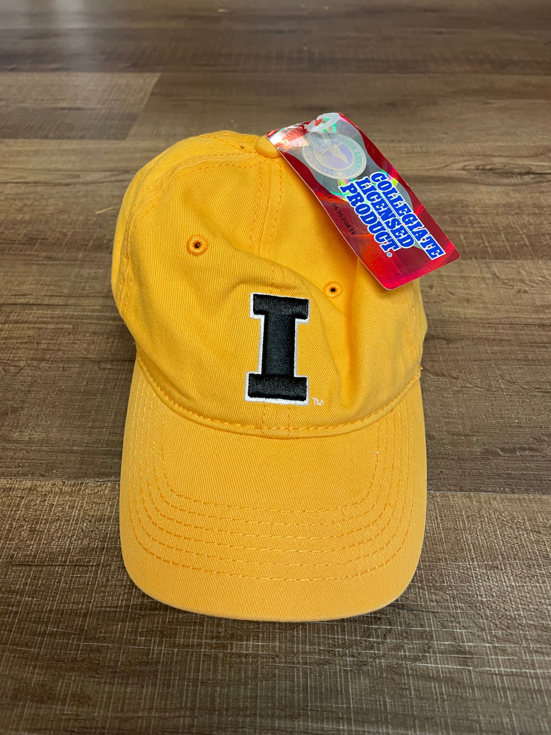 This Collegiate Licensed 'Lil Hawkeye gold baseball hat has a raised Hawkeye "I" embroidered on the front of that hat and "Lil-Hawkeye" embroidered on the back in all caps. This is an adjustable cap. Brand new, with tags. The perfect gift for a young Hawkeye fan!