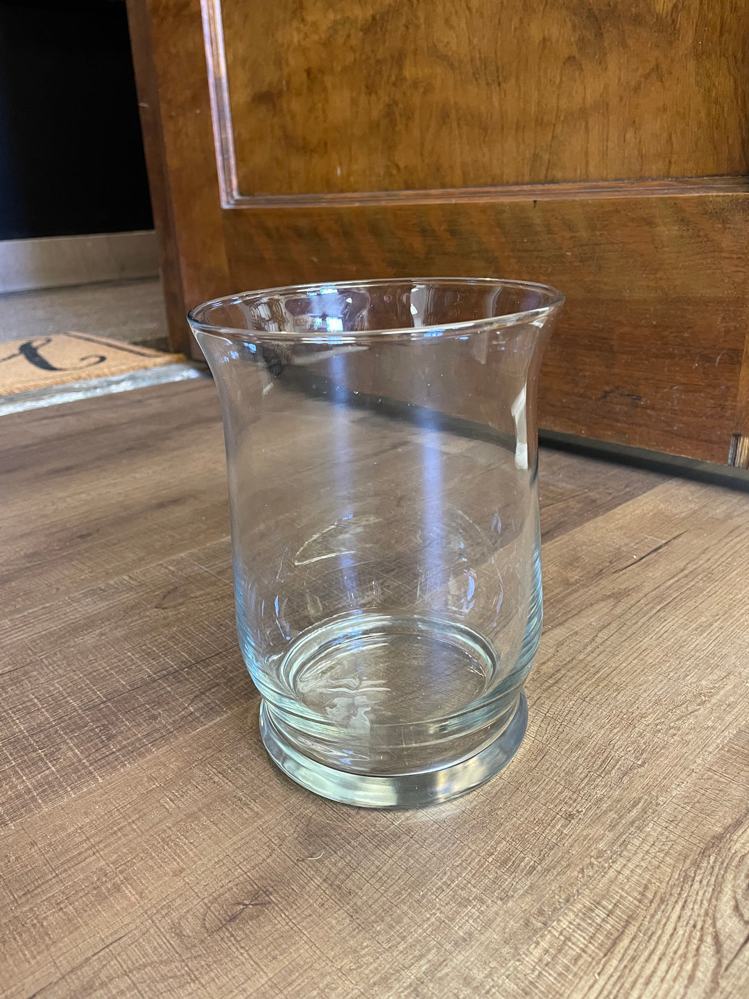 With its uniquely curved glass design, this vase adds a beautiful touch to any room. Perfect for showcasing your floral arrangements or filling with decor. The base measures 5in across. The opening is 5.5in and it's 8in tall. Previously loved, in great condition.