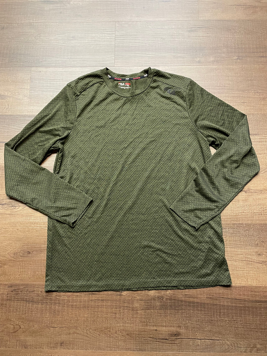 This Fila Sport mesh long sleeved tee is perfect for staying cool and dry during any workout. The breathable mesh fabric allows for maximum airflow while the long sleeves provide added coverage. Ideal for the active individual looking for both functionality and style. Previously loved, in great condition. Men's size large.
