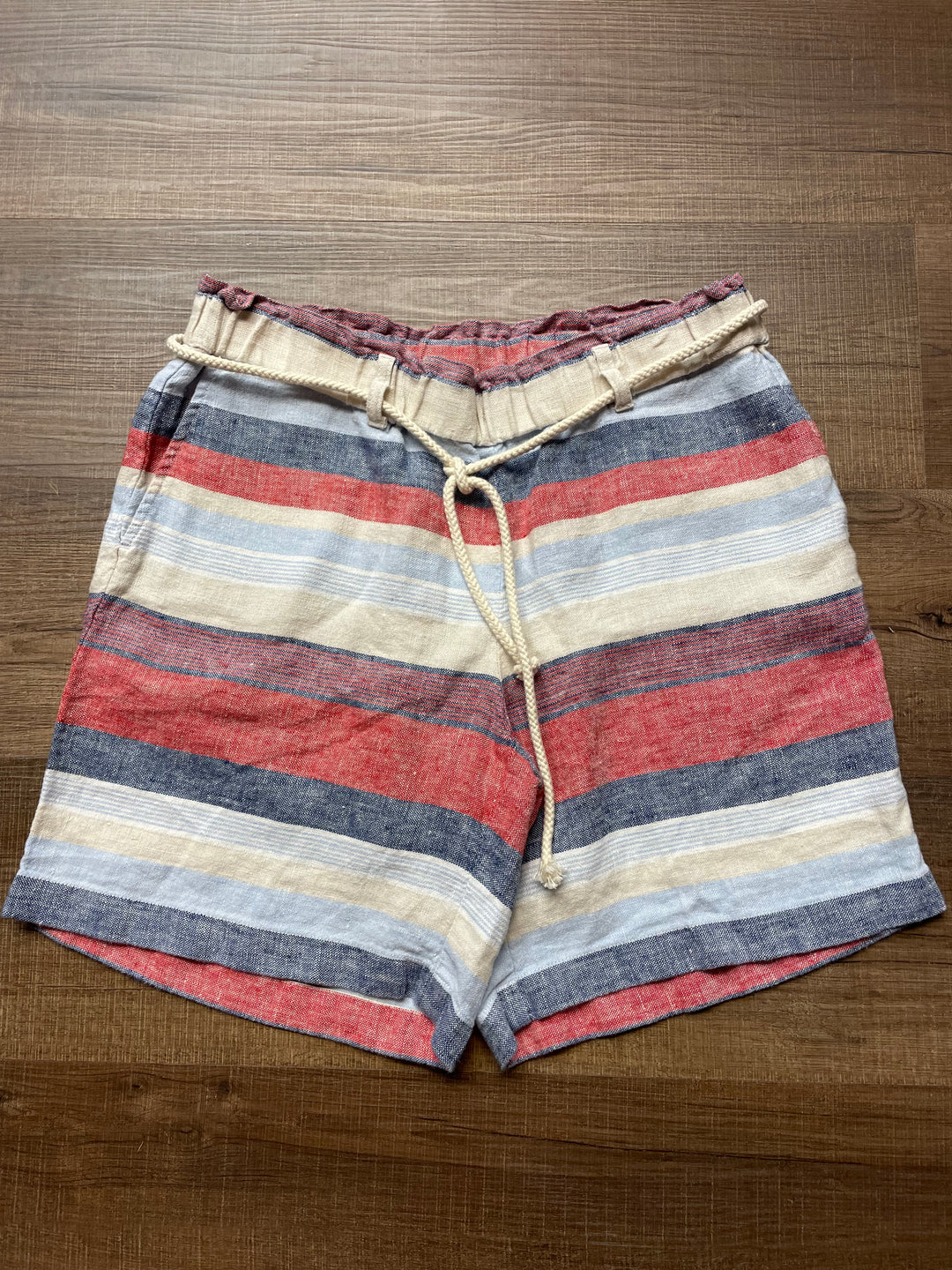 Get ready to fall in love with these J. Jill Love Linen striped women's shorts. Made from lightweight and breathable 100% linen, these shorts are perfect for summer. Two hand pockets and a cute rope belt make these shorts the perfect look for spring and summer. Brand new, with tags. Women's size small. The inseam is 7in and the total length is 16in.