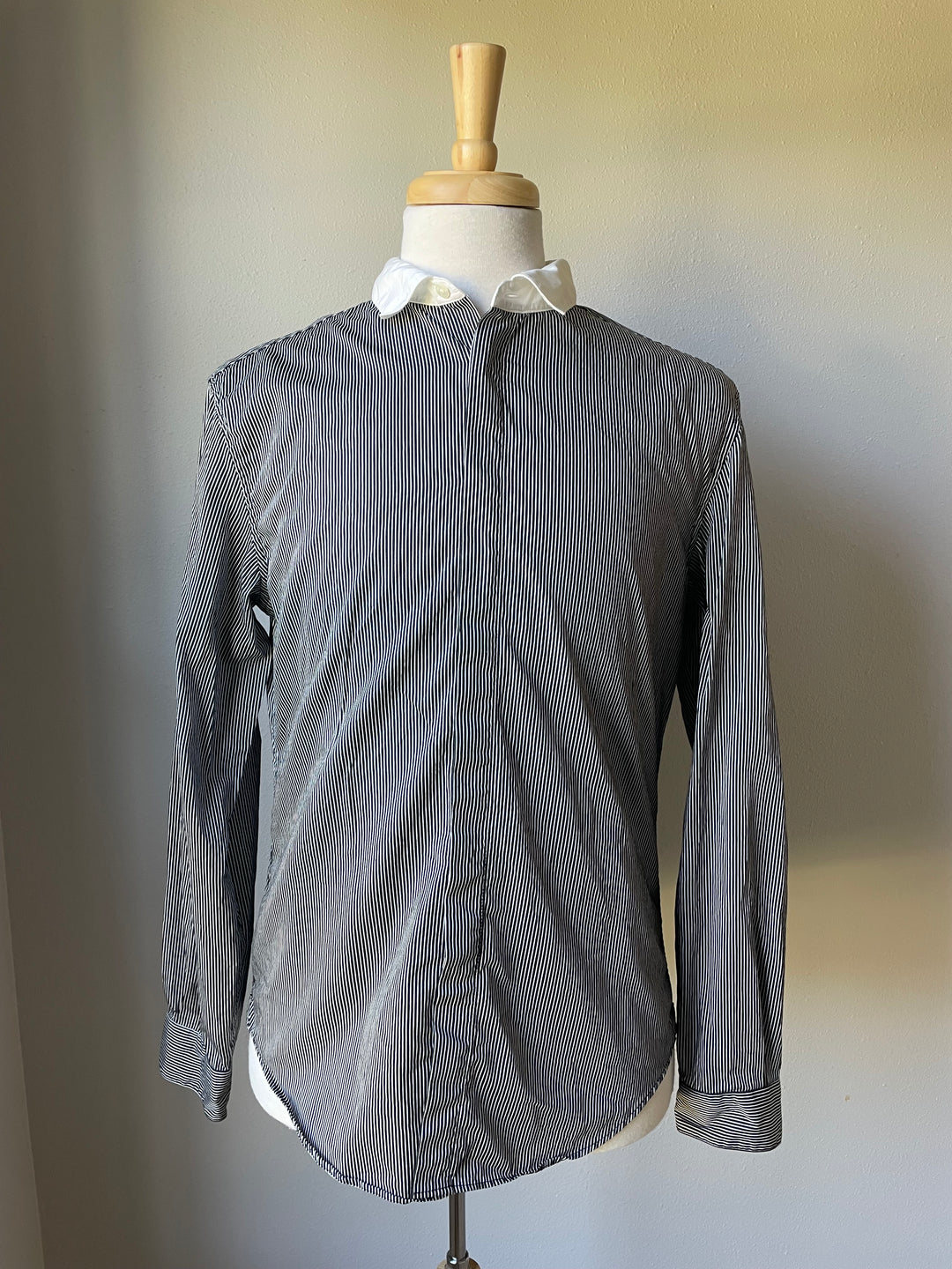 Elevate your style game with the John Varvatos black & white pinstripe men's button down. This sharp shirt blends classic pinstripes with a modern twist, perfect for turning heads whether you're at a casual brunch or a night out. Comfortable yet confident—because looking good should always be effortless.