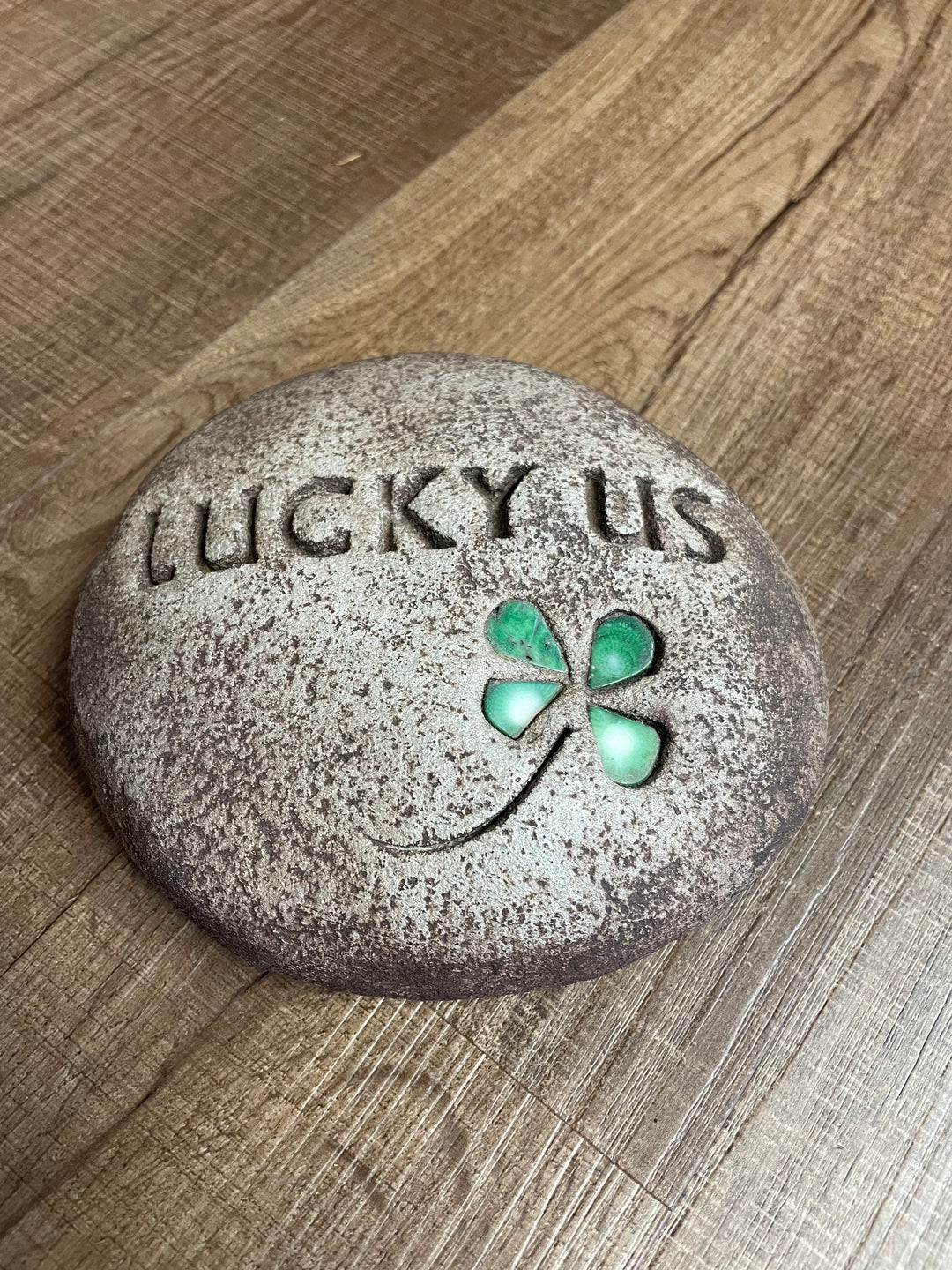 The Lucky Us stone is a powerful tool for manifesting positive energy and good luck. Made of genuine stone, it harnesses the natural energy of the earth to bring abundance and good fortune to its owner. With the Lucky Us stone, you can attract luck and prosperity into your life with ease. For use in your garden or house. Stone measures 5.5" around. Previously loved, in great condition.