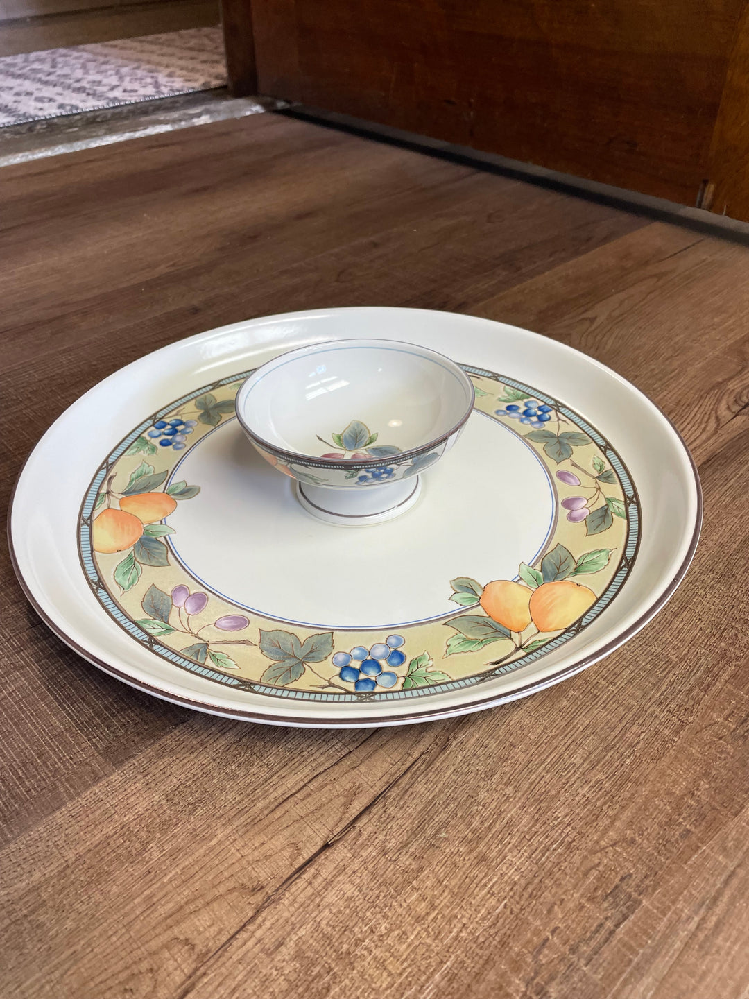 Add a splash of fun to your snack time with the Mikasa Garden Harvest 14" Chip and Dip set! Brand new in box, this charming set features vibrant garden-inspired designs perfect for serving your favorite chips and dips. Whether it’s a casual get-together or a festive party, this playful piece will brighten your table and keep the snacks flowing.