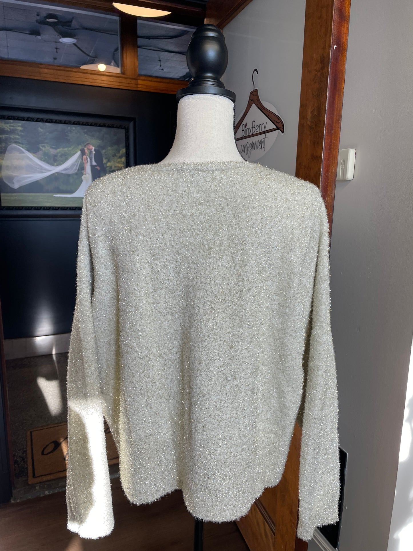 This cardigan is the perfect blend of comfort and style. Made from a soft blend with a full button front, the gold eyelash detail adds a touch of glamour to any outfit. And with its cropped design, it's sure to flatter your figure.