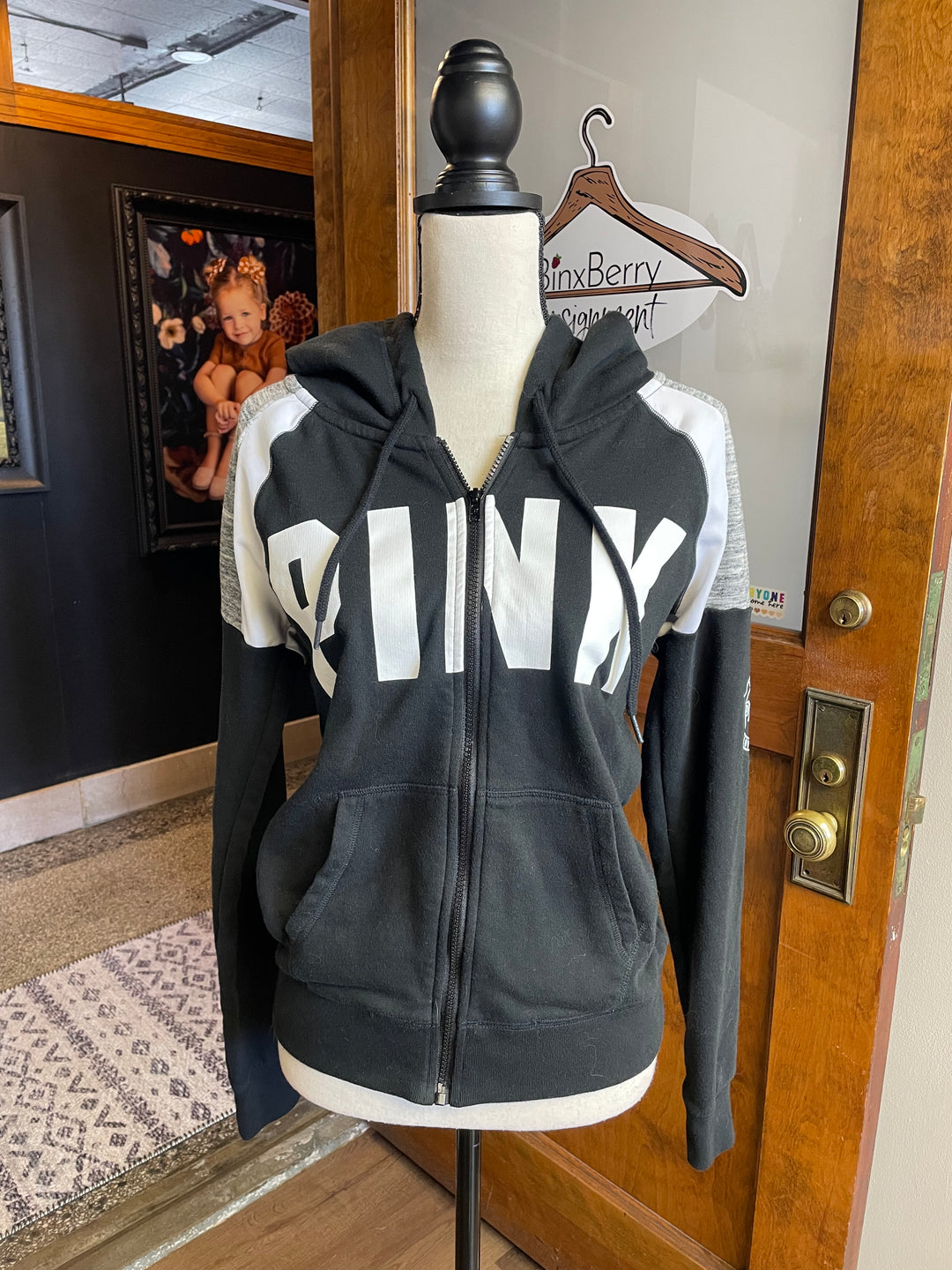Stay cozy and stylish in this playful pink full zip women's hoodie. Perfect for layering, it offers a comfortable fit with easy zip closure, making it your go-to for casual outings or relaxed days at home. Light terry lining.