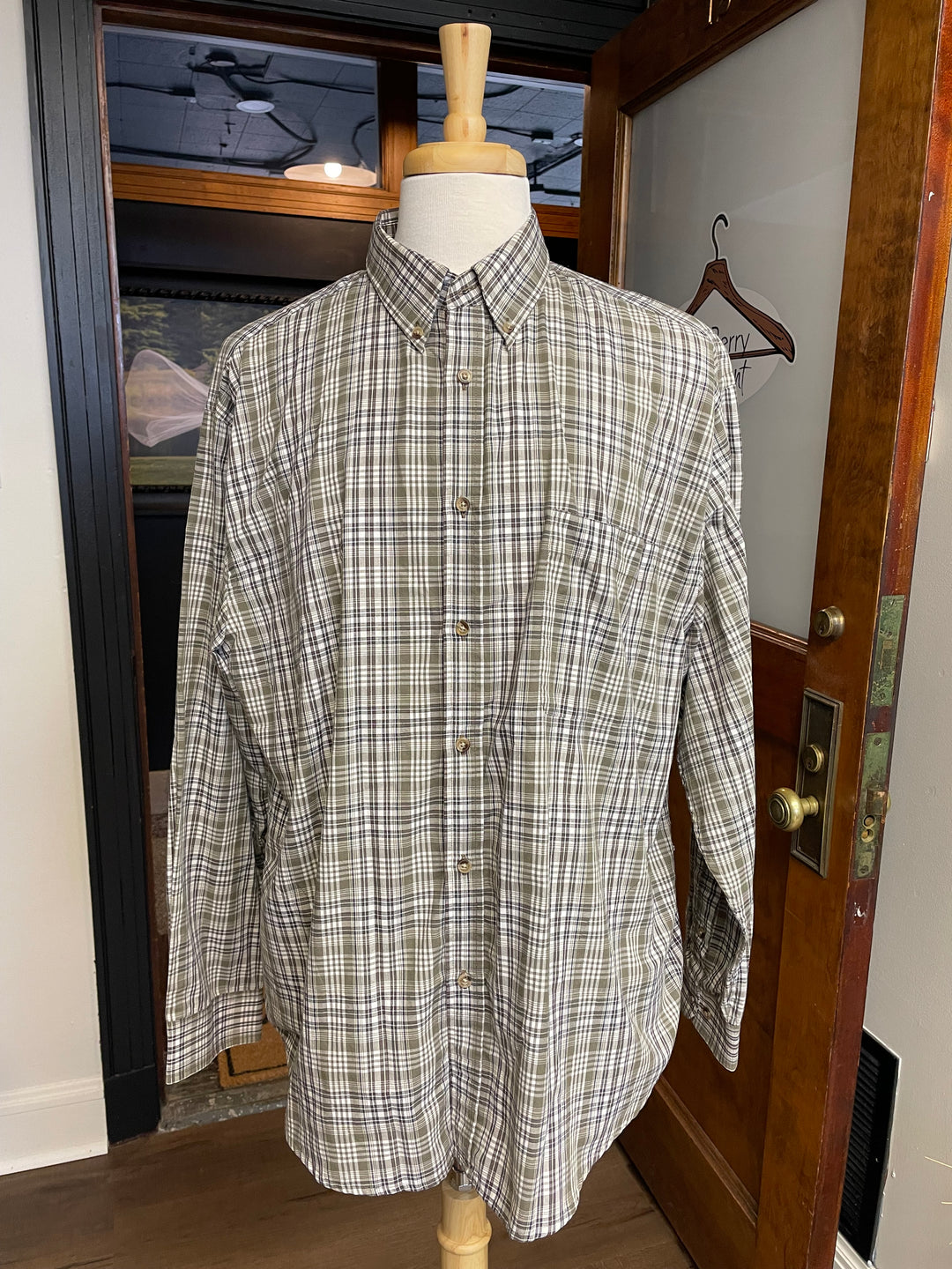 Stay wrinkle-free and stylish in this Puritan men's button down shirt! This brown plaid shirt is made with a polyester/cotton wrinkle-resistant blend for effortless wear. Perfect for any occasion, it's sure to become a wardrobe staple. Full button closure and button cuffs. A great quality second hand men's button down plaid shirt. Size XL.