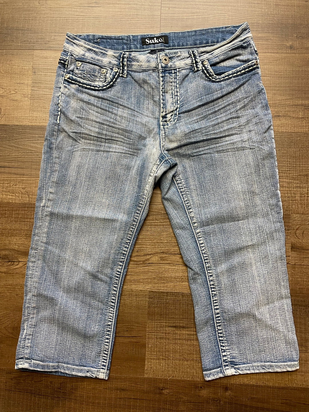 These playful women's denim capris from Suko blend casual comfort with a splash of style, perfect for adventures or laid-back afternoons. Their flattering fit and classic denim look make them a go-to for adding fun to your wardrobe.